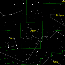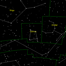 Ο κόρακας, το ηλιακό ιερό πτηνό του Απόλλωνα. Στην ουρά της Ύδρας βρίσκεται. Κοντά τους ο Κρατήρ.